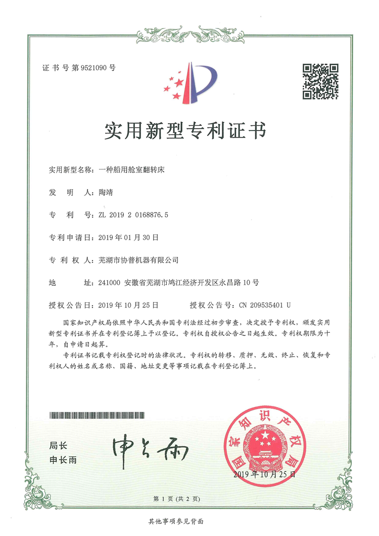 實用專利證書