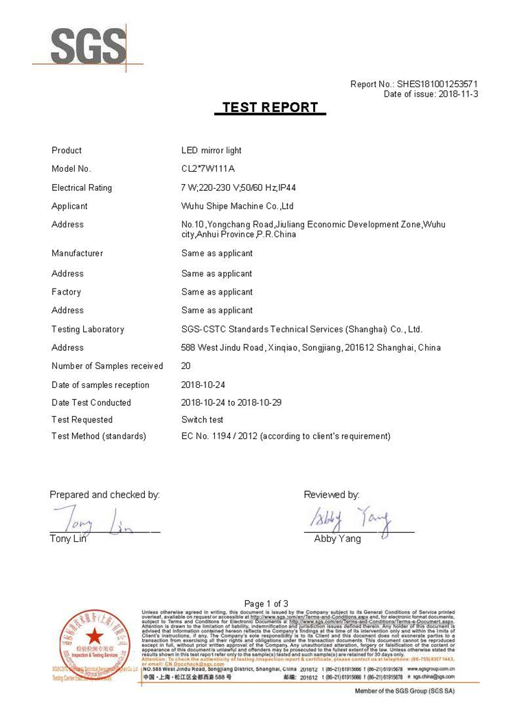 • SGS證書